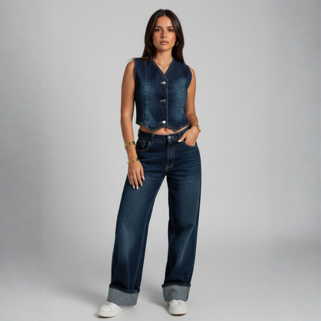 Crafted from premium denim with a soft faded navy wash, these pants offer a relaxed yet tailored fit that moves with you. Clean lines and thoughtful construction make them comfortable for all-day wear while keeping your look elevated. Pair them with the matching vest or wear solo—either way, they deliver timeless, versatile style.